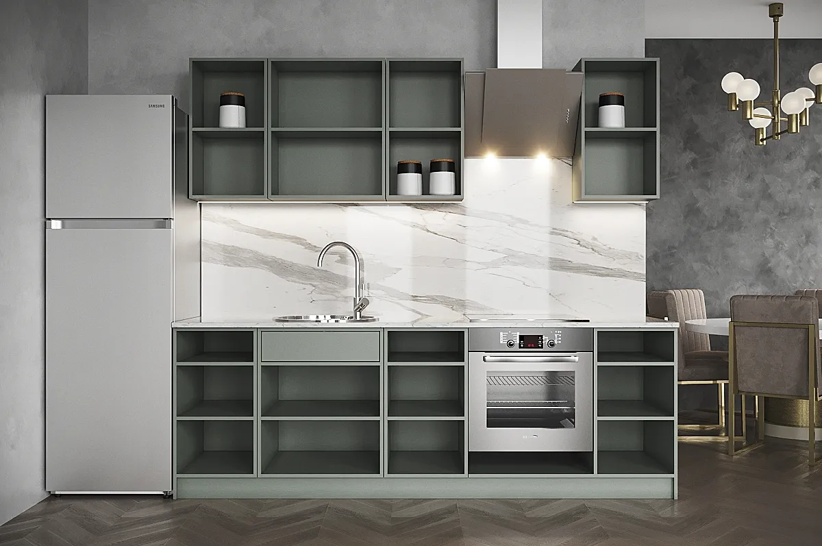 Модульные кухни - это готовые решения в наличии на нашем складе, которые состоят из отдельных корпусов разных размеров, а так же фасадов разных цветов и фактур. Из этого множества компонентов вам необходимо выбрать те модули, которые подойдут вам по размеру и дизайну или воспользоваться услугами нашего замерщика.